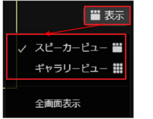 右上の[表示]をクリックして、[スピーカービュー]または[ギャラリービュー]を選択する