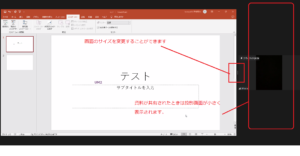 スライド資料を表示させたときに会場の投影画面が小さく表示されます。